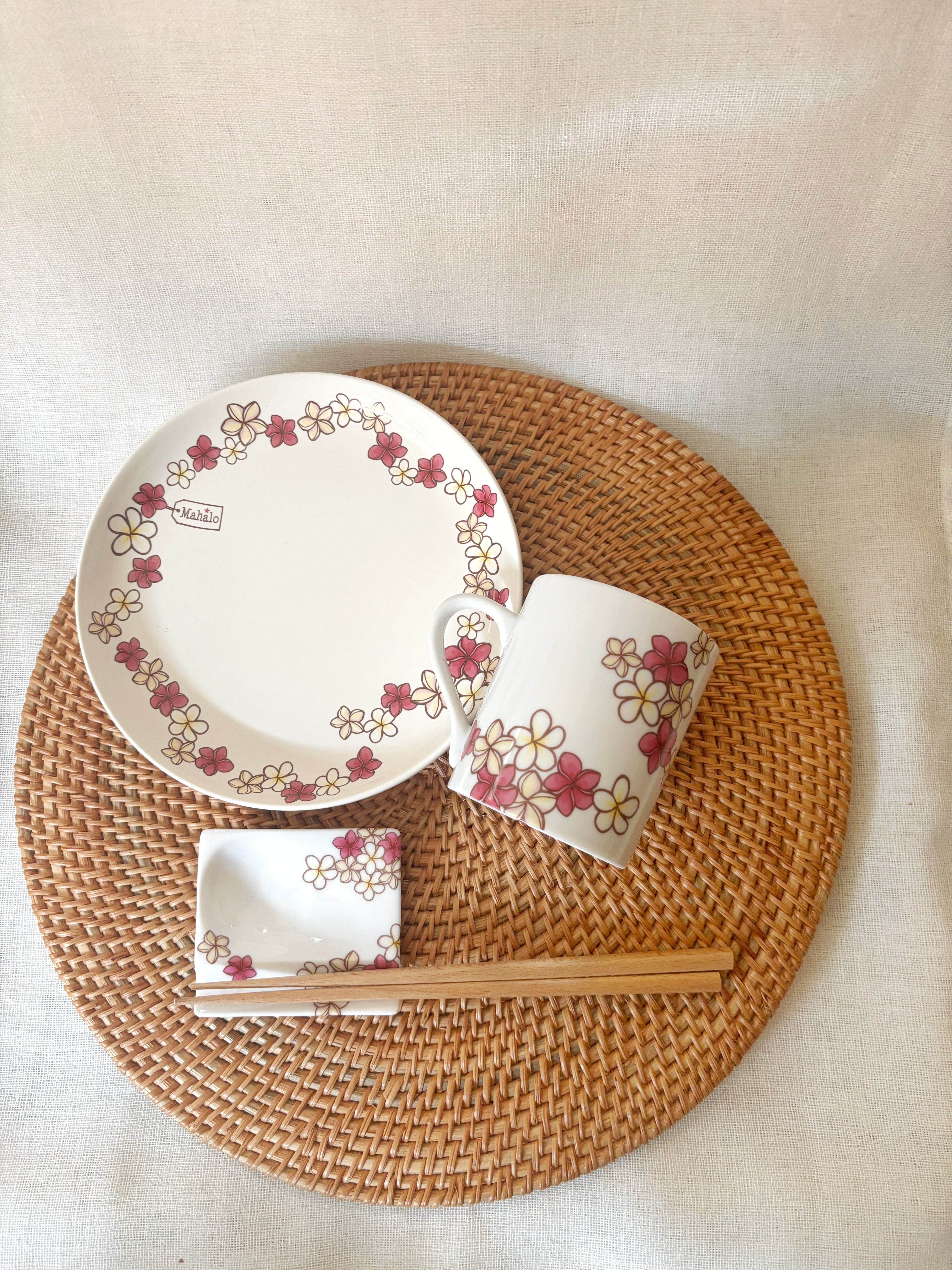 さっと済ませてしまう時も、ゆっくりお食事する時もお気に入りのプルメリアプレートを使えば、ご馳走に早替わり!
