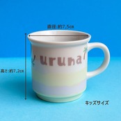 お子さまが大好きなママ&パパと同じデザインで使える、陶器の名入れマグカップ。