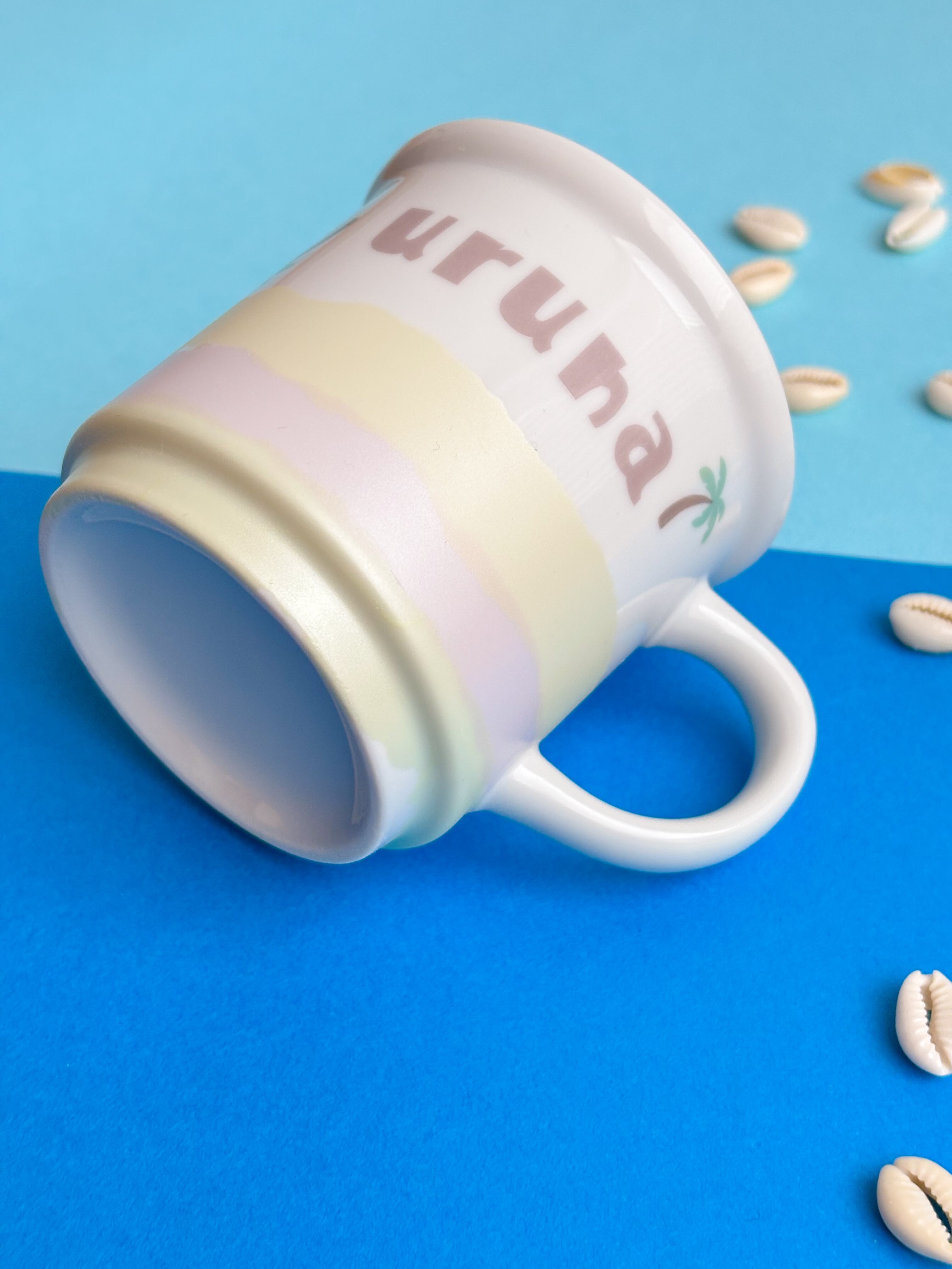 やさしいパステルレインボーと小さなヤシの木が、まるでハワイの風を運ぶよう。